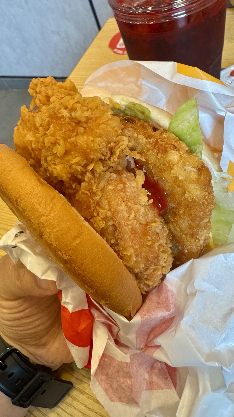 오랜만에 반가운 소식을 듣고 다녀왔습니다.목포 평화광장 쪽, 투썸플레이스 바로 옆에 KFC가 다시 생겼더라고요. 어릴 적 종종 먹던 치킨맛이 생각나서 와이프와 함께 방문했습니다. 매장 입구 & 내부 분위기입구부터 깔끔한 느낌이었고, 들어가 보니 매장이 넓고 깨끗했습니다.특히 키오스크가 3대나 있어서 주문도 편리했어요. 줄 서는 불편함은 없었습니다.KFC 어플을 다운받으면 할인가능한 쿠폰 및 적립도 가능하니 잊지 마시길!! ^^주문한 메뉴이번에 제가 먹은 건 징거타워버거와, 징거버거 세트,더운날 고생하고 계실 부모님께는 핫크리스피치킨 8조각 세트를 시켜 포장했습니다.징거타워버거 : 징거버거에 치즈, 해시브라운, 토마토까지 들어 있어서 푸짐합니다. 첫 입은 정말 맛있었는데, 뒤로 갈수록 살짝 느끼해져서 콜라..