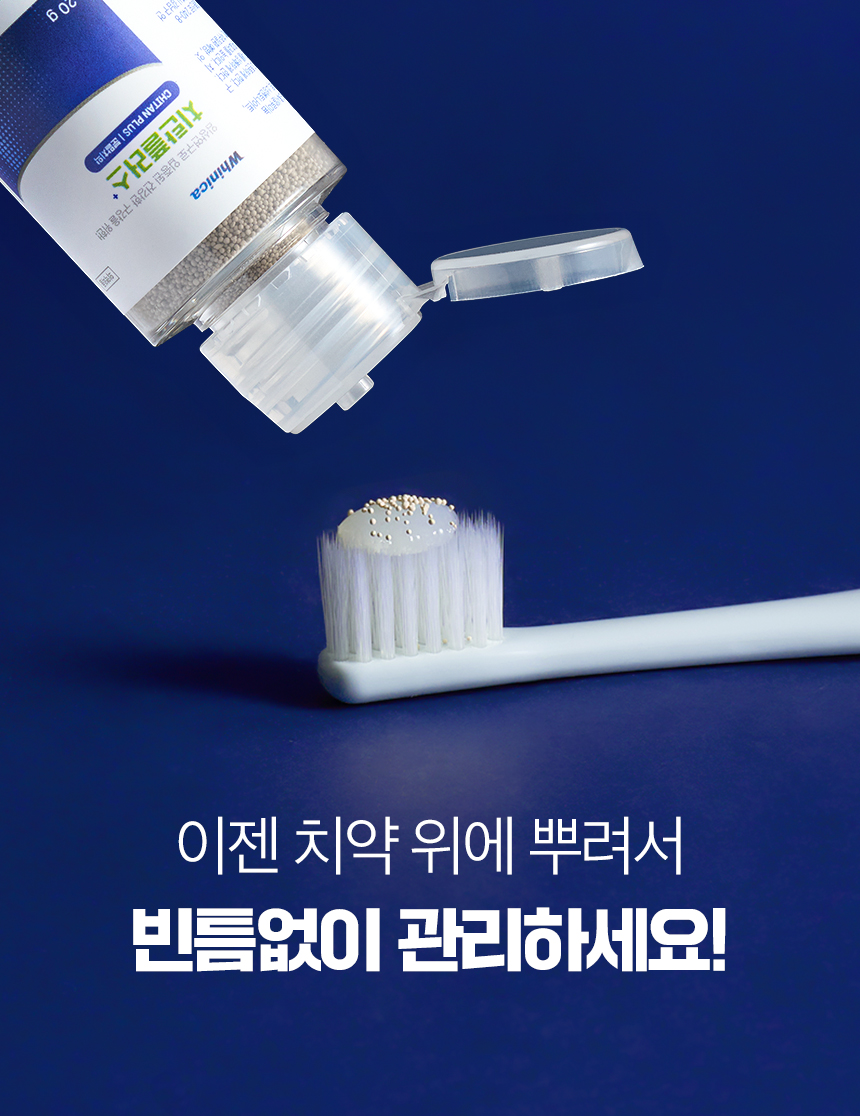 바로 ‘치탄플러스(Chitan Plus)’, 파우더 형태로 치약 위에 뿌려서 사용하는 제품!!